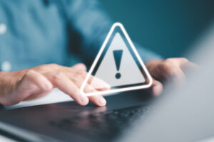 System warning on hacked alert, cyberattack in computer network. Cybersecurity vulnerability, data breach illegal connection, compromised information concept. Malicious software, virus and cybercrime.