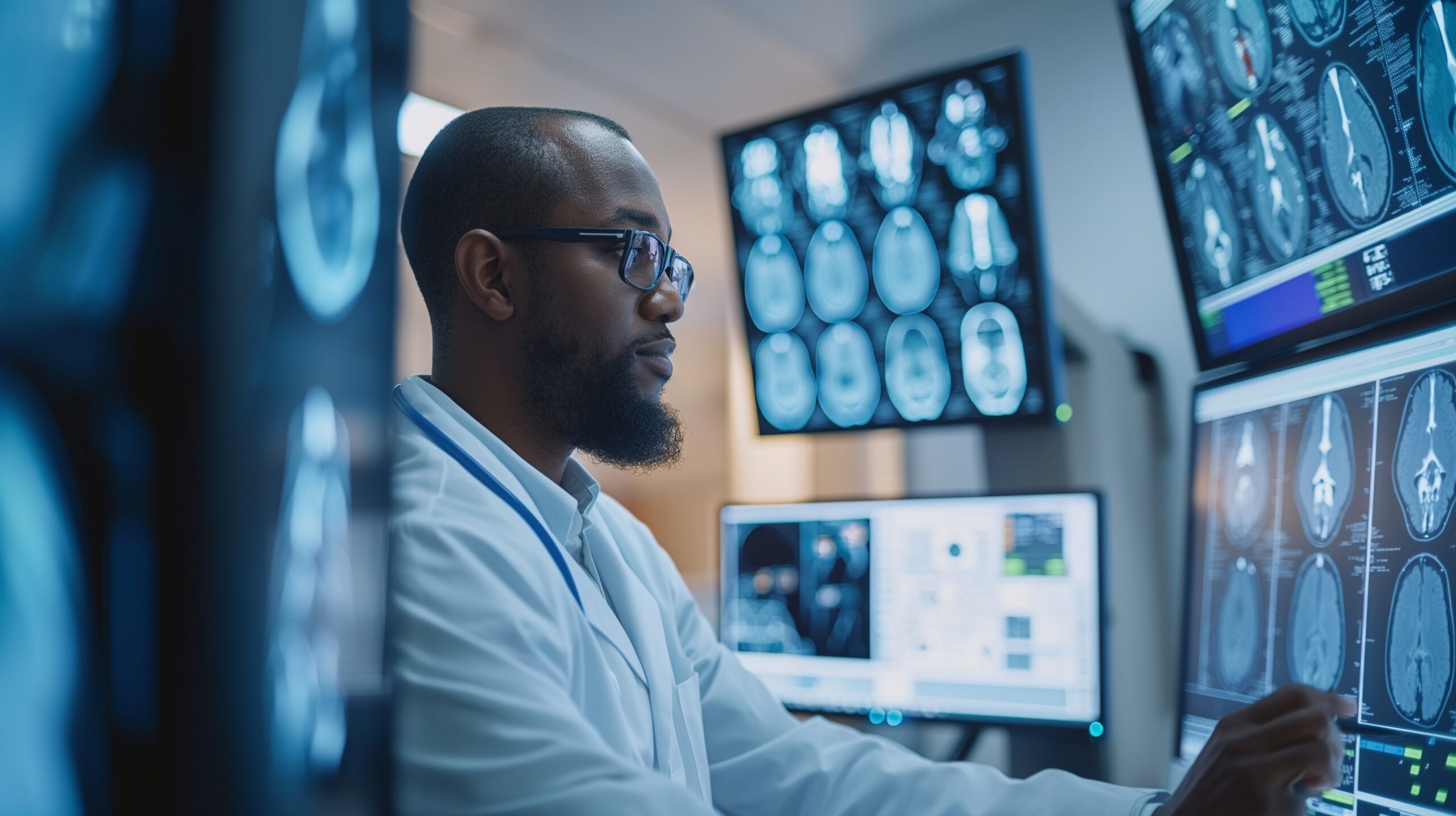radiologist interpreting medical images like X-rays, CT scans, and MRIs