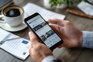 Person reviewing news on a smartphone